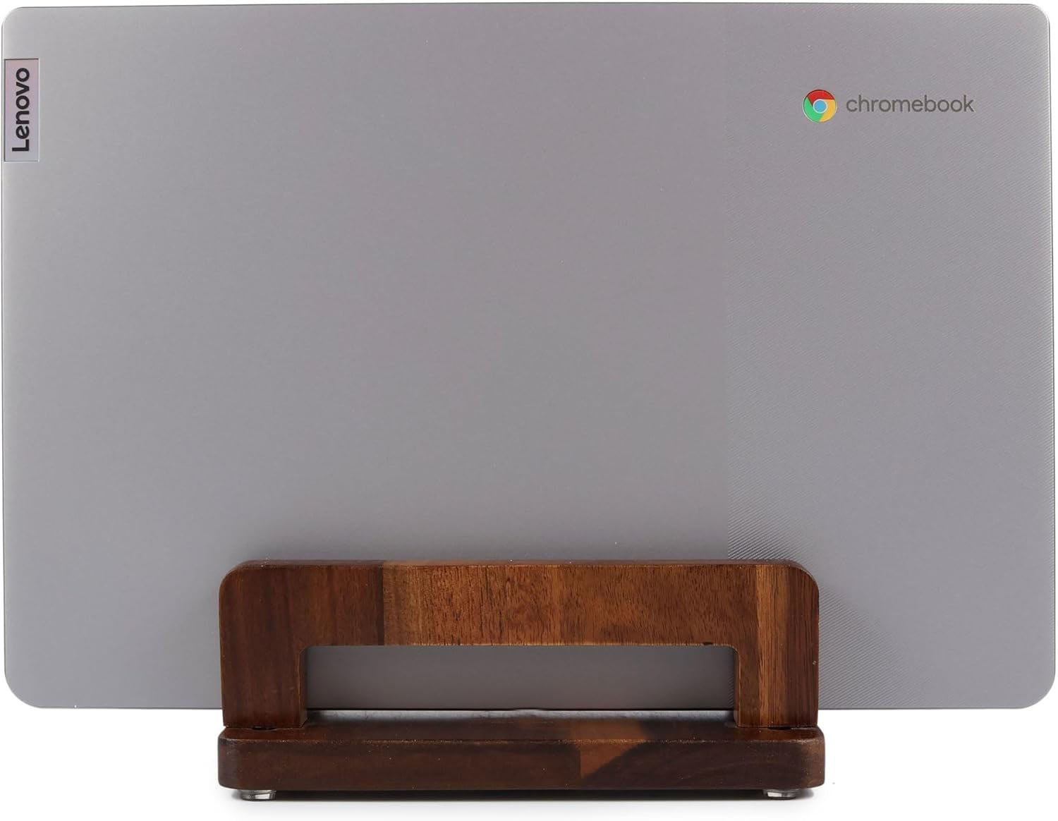 Crafted from sustainable acacia wood, this vertical laptop stand reduces desk clutter, protects devices from spills, and adds a sleek rustic touch to your workspace.