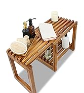 VERSATILE AND MULTI-USE: Our shower bench with a Built-In Shelf is equally effective whether utilized in your bathroom as a shower bench or placed outdoors by the swimming pool or on the patio, functioning as a versatile side table or coffee table. It offers a sustained feeling of security and elegance to enhance your bathing experience