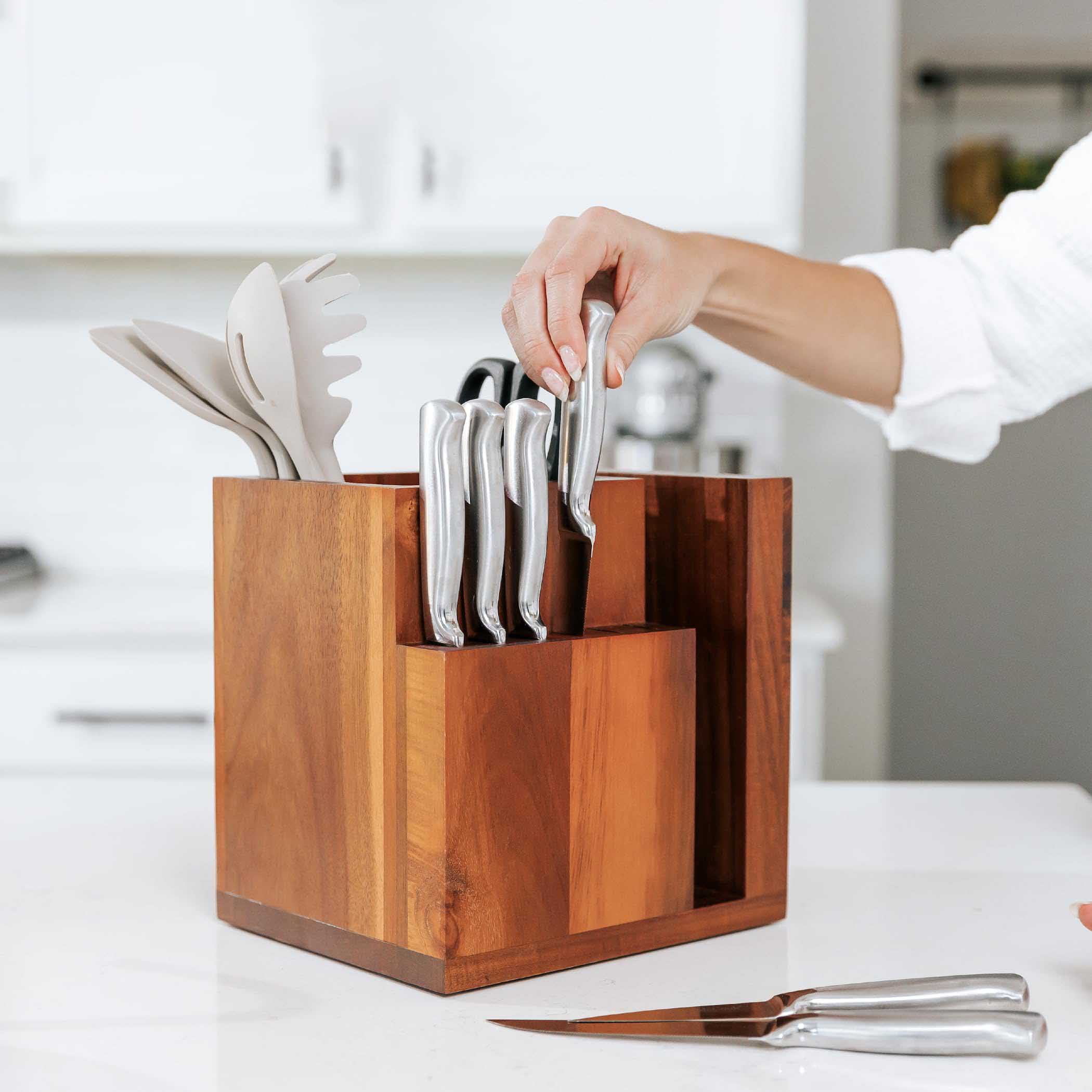 hold 6 steak knives, while the integrated utensil holder provides room for spatulas, spoons, and more, ensuring all essential tools are within reach.